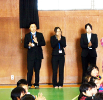 4 教育実習の先生達の紹介 3人の教育実習の先生達からも挨拶がありました。 ちなみにどの先生達も、田辺東小学校の卒業生です。