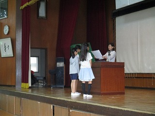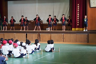 ★低・中・高学ブロックごとに、表現の一部を紹介しました。他の学年の頑張る姿を見ることも大切な勉強です。