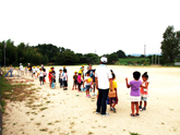 運動場で、子ども達が元気に遊んでいました。