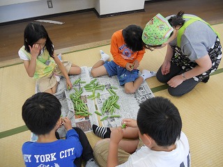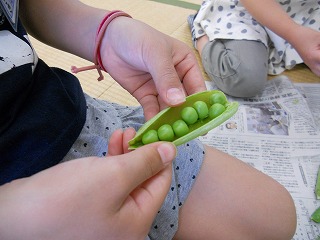 エンドウ豆のさやむき体験