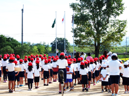 赤白の代表児童が、息を合わせて誓いの言葉を言います。 二人とも大きな声で宣誓をすることが出来ました。