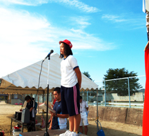児童会代表が、応援団の表彰をします。 しっかりと出来ていました。
