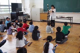 子どもたちは、先生の演奏によるアニメの主題曲に感動したり、クライネソプラニーノリコーダーからテナーリコーダーまで、その種類や音の高さの違いなど、初めて見聞きすることばかりで驚きの連続でした。これから、リコーダーを大切に色々な曲を演奏する楽しみを覚えて行って欲しいと思います。
