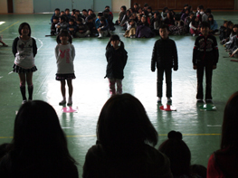 さて、続いて各学年等の発表を紹介しましょう。まずはわかば学級から。わかば学級は、5人で発表をしました。いつもは9人で発表をするのですが、今日はわかばの6年生4名は、送られる側なので、一緒に発表することはできません。「大きくなっても」を、元気よく歌いました。