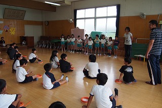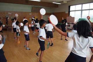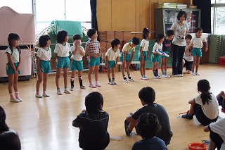 中学年のかっこいい踊りを披露!幼稚園の人たちから大きな拍手をもらいました。