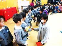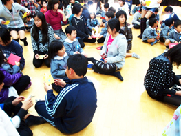 幼稚園と6年生とが、合同のクリスマス会をしました。