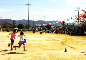 幼稚園の運動会に児童が出場