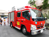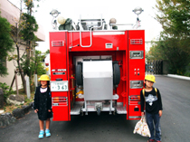 などと言いながら、下校中の子ども達がはしご車を見ていました。
