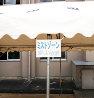 <写真3:北校舎側にはミストシャワーがついています。>