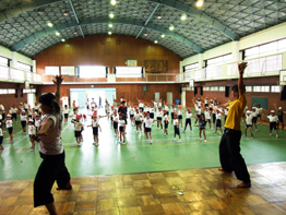 大学のお姉さん達が講師として教えに来てくださり、子ども達と楽しく練習をしました。