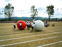「レッツ大玉ころがし!!」です。大玉を速く転がしたいのですが、速すぎるとカーブを回りきることが出来ません。スピードを落とすことなく、見事にカーブを回ったり、コースアウトしたりと、はらはらどきどきの楽しい展開となりました。