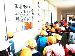 小学生のお兄さんやお姉さん達の書き初めを見るためです。