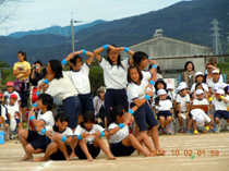 塔は、組み体操の中で最も難しい技の1つです。 土台がしっかりしなければ成功しません。子ども達は、気合いを入れて見事に成功させました。会場中から大きな拍手を頂きました。