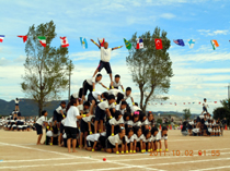 工夫を凝らしたピラミッドも、見事に成功!! 頂点の子が両手を広げて、きれいにポーズを決めることが出来ました。 素晴らしいできばえです。