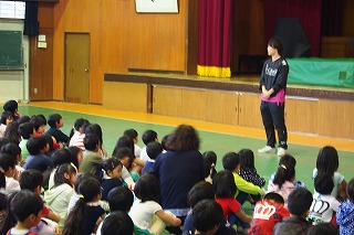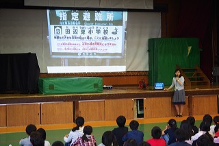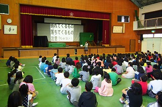 |  | |  | | 全校朝礼4月27日 本日のお話しのテーマは「地震」です。 九州地方(熊本)の大地震の被害の様子や被災された方たちのこと、学校が避難所になっていて勉強ができないことや友だちとも会えなくなっていること、また、避難所でボランティアとして頑張る小学生のお話などをしました。地震が来たときの避難の仕方についても確認しました。 1 自分の命を守るためにできることは何か。 2 災害の時、子どもでも人のためにできることは何か。 いつも考え、自ら行動できる人になって欲しいと思います。