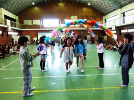 まず初めに、入場です。かわいい音楽に乗せて、6年生に手を引かれた1年生が入場して来ました。