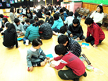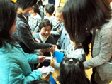 5年生は、プレゼントのおもちゃの使い方を、優しく教えてあげました。