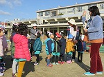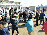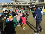 2月3日の節分を前にみんなで豆まきをしました。昨年を覚えている年長・年中の子どもたちは「明日鬼来るかな~」とドキドキしていました。自分の鬼のお面をつけて園庭に集まり、先生から節分の話を聞きました。