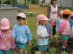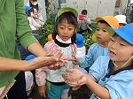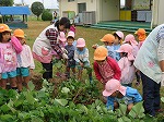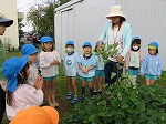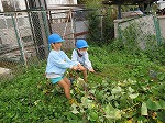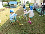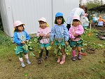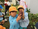 今日は6月に植えたサツマイモを収穫しました。水やりをしたり、毎日虫取りをしてサツマイモの生長を身近に感じてきました。「お芋ほりするよー」の声に畑に集合した子どもたちです。