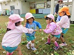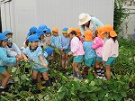 『自分たちで植えて、育てたものをいただく』貴重な体験だと思います。自然とかかわろうとする姿、生命尊重の気持ち、みんなで力を合わせて収穫する協同性、ツルを使って様々な遊び方を考える豊かな感性と表現…などなど遊びの中にたくさんの学びがありました。これからも心躍る直接体験・感動体験を大切にしていきたいと思います。