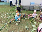お芋ほりの後はツルを使ってつなひきをしたり、電車ごっこしたり、スカートや冠を作ったりして楽しみました。