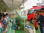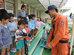 最後に消防車を見せてもらい、消防士さんにいろいろな質問をしました。「あれは何?」「これは?」と様々な質問が出て、消防士さんが丁寧に答えてくださいました。