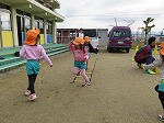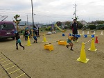 5歳児ゆり組。ウォーミングアップも元気いっぱい。集中して取り組んでいました。