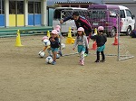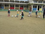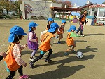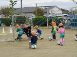 3歳児うさぎ組も待ちに待ったサッカー!ボールを力強く蹴っていましたよ。