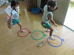 にんじゃになりきって修行やリズム遊びを楽しんでいるすみれ組。