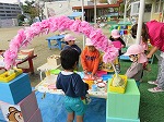 年少うさぎ組はレストラン、年中すみれ組はスィーツ屋さんとピザ屋さん、年長ゆり組はコンビニ、ゲームコーナー、銀行がオープン!!「いらっしゃいませ」「おいしいですよ」「1000円です。おつりどうぞ」「ありがとうございました」などなど友だちと言葉のやりとりを楽しみました。