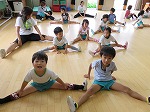 まずはストレッチ!!「いたーい」「みてみて!ここまでひろげられるよ」