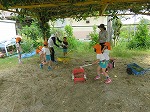 「あっ!カエルいた」「てんとうむし!」「ミミズやー」と虫さんもでてきて自然に親しむことができました。スッキリきれいになった園庭でこれからも自然に親しんで遊ぼうね!ご協力くださってありがとうございました。