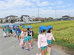 10月24日 年長ゆり組が中部住民センター(せせらぎ)内の図書館に絵本を借りに行きました。四季の移り変わりを感じながら歩いていく、せせらぎまでの道のりは、子どもたちにとって楽しみの一つです。「ここ、前は田植えしてはったのになぁ」「お米できた!」「お米の皮(もみ殻)やー!」自然を感じながら歩きました。
