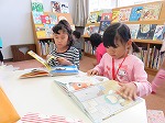 たくさん発見しながら1時間近くかかって、せせらぎに到着!!お気に入りの絵本を探しました。「お茶の本あるかな~?」「借りよう!」とクラスで借りてきました。