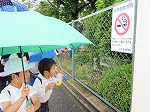 そして…「先生みて!」「きれい!」と指さした先には、クモが蜘蛛の巣を作っていて、雨粒がキラキラ光ってきれいでした。