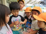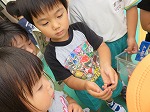 お昼からは「先生!こっちきて!」「幼虫やー」パンジーについていたツマグロヒョウモンの幼虫を発見!「ぼく、触れるよ」と触る姿や「なんのむしやろ?」と図鑑で調べる姿がみられました。