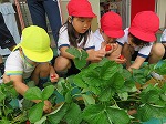 5月7日 年長ゆり組の子ども達と田辺東小学校の1年生と一緒に、いちご摘みをしました。小学生が幼稚園に来てくれると、「来てくれたー!」と、大喜びの子ども達。お兄さん、お姉さんと一緒に、「これ大きいね」「おいしそう」と、話しながらいちごを収穫し、食べると「あま~い!」と笑顔(^^♪ みんなで収穫する喜びを味わいました。