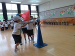 また、一緒に体操やふれあい遊び、いちご運びリレーもして、小学生との楽しい交流の時間となった子ども達です。