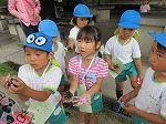 山の探検へ出発した子ども達。忍者になりきり、山の中の修行ポイントをクリアしていき、宝を発見してゴール!途中、雨がパラパラと降り始め、「ゴールできるかな?」と心配する子ども達でしたが、グループの友達と力を合わせて無事ゴールしました。
