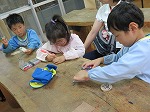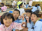 また、キーホルダー作りでは、指導員さんに作り方を教えてもらいながら、真剣に絵を描き、完成すると「私のはこんなキーホルダー!」「これ、お父さんに見せるんだ」と、世界に一つしかないキーホルダーに大喜びでした。
