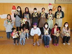 12月8日 わらや木の実に触れ合いながら、保護者同士ものつくりを楽しみ親睦をはかる目的で宇治田原町の藤井さんをお迎えし、親子井戸端会議「しめ縄作り」をしました。「今年の無事を感謝し、来年の福を呼び込めるように作りましょう」とお話ししていただきました。