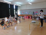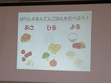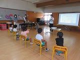 食育教室がありました! 京田辺市の健康推進課の方が年長ゆり組の子どもたちに食事や生活習慣についてのお話をしてくださいました。