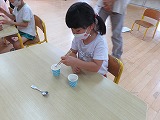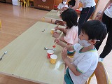 野菜のおなかクイズでは、親しみのある野菜の断面図を見て、「トマトかな?」「きゅうりだと思う!」と嬉しそうに手を挙げて答えていた子どもたちです。