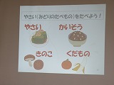 黄色、赤色、緑色の三食の食品群のお話から、バランスのよい食事についても分かりやすく教えてもらいました。