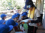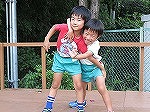 「大変!!!空から手裏剣が降ってきたよ」と先生たちの声に行ってみるとアスレチックに手裏剣が隠されていました。「あった!」「また見つけた!」手裏剣探しを楽しみました。