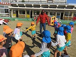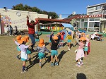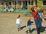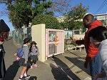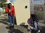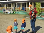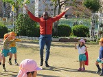 11月2日 幼稚園にシェボーン先生が来てくださいました。門の前に立って、一人一人を出迎えてくださいました。「Good morning!]「Hello!○○ちゃん!」と名前を呼んでくださり、ちょっぴり緊張気味の子どもたちでした。