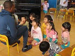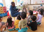 英語の手遊びを教えてもらったり、「はらぺこあおむし」や「うずらちゃんのかくれんぼ」の絵本を英語で読んでもらったりしました。
