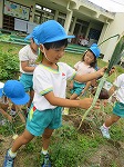 「大きさ比べをしよう!」「同じくらいの大きさにわけよう!」「何個あるかな?」と数や大小の比較をして楽しみました。収穫だけの楽しみだけでなく、幼稚園の遊びは学びがいっぱいあります。