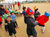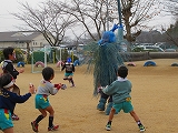 宇治田原のわらで編んだみの着用の鬼達。迫力満点、演技はアカデミー賞もの。3歳児は次々泣き出し、ごめんなさい。リアル過ぎました!鰯も豆も食べたのに、何とそのあと学級閉鎖!