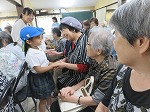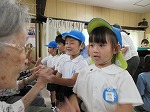 一人ずつ、おじいちゃん、おばあちゃんとタッチをしたり、握手をしたり「ありがとう」「いつまでもおげんきで」「ながいきしてね」「またくるね」「あくしゅ!」などなど自分の思ったことを素直に声に出して触れ合うことができました。